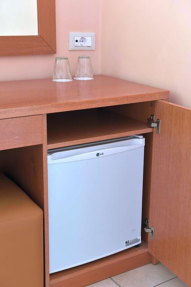 Air-conditioned room with a TV and a private bathroom with hairdryer.